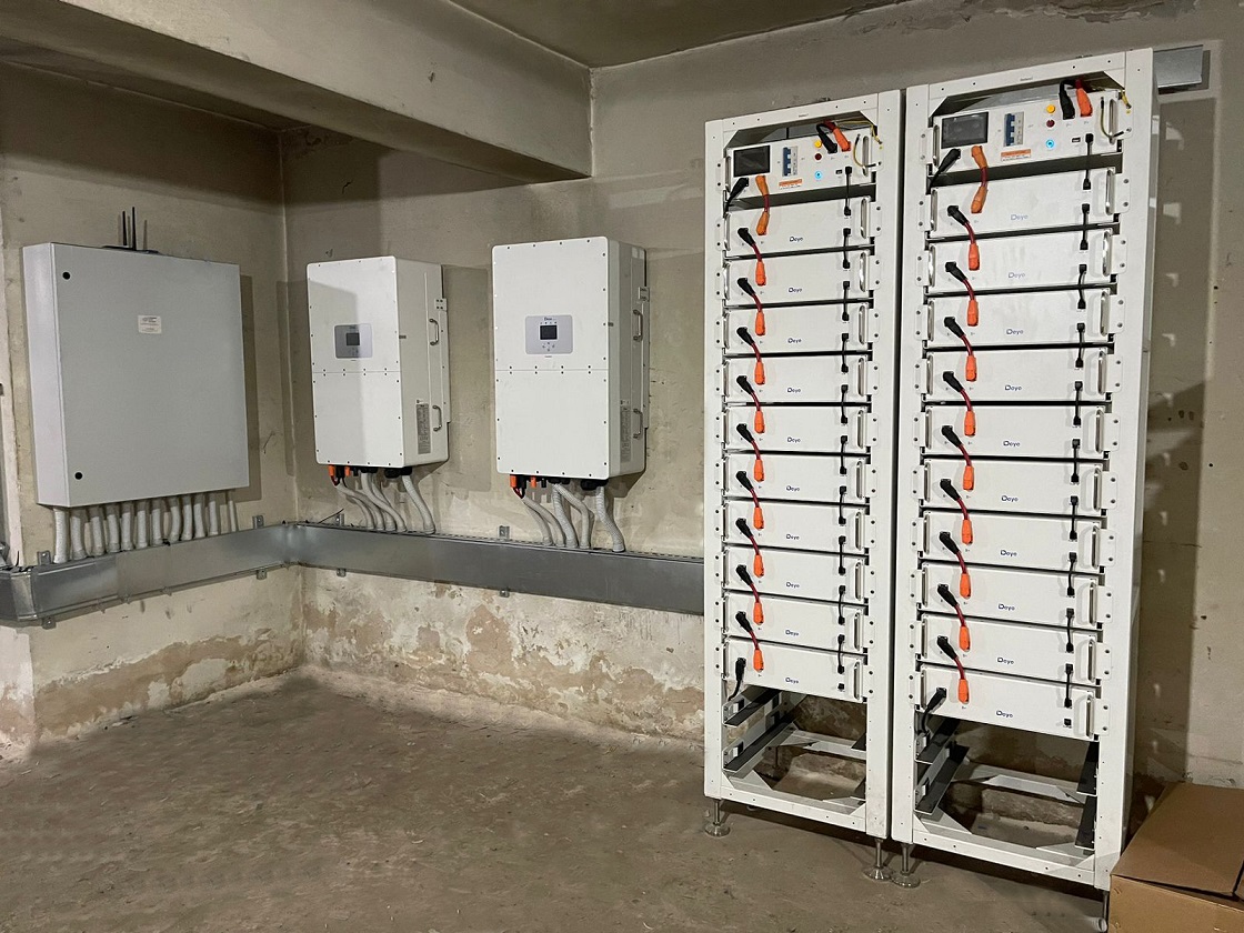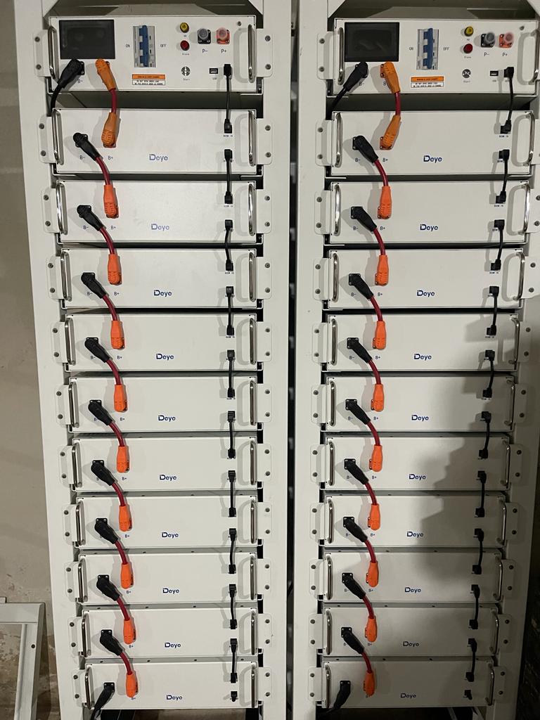 In the realm of advanced energy solutions, we proudly present a visionary integration featuring two Deye 50KW high voltage inverters, two racks of Deye batteries (5.12kWh each, totaling 20 batteries), and 32 bifacial Jinko panels. This sophisticated ensemble not only exemplifies technological innovation but also underscores our commitment to a sustainable energy future. At the core of this transformative system are the two Deye 50KW high voltage inverters, heralding a new era in intelligent energy conversion. These inverters showcase not only substantial power capabilities but also embody technological finesse, ensuring seamless integration into high-performance energy grids. Their high voltage design signifies an advanced approach to power conversion, contributing to enhanced overall system efficiency. The racks of Deye batteries, each boasting 5.12kWh of energy storage, constitute a robust foundation for uninterrupted power supply. Assembled into two purpose-built racks containing 20 batteries, this configuration ensures efficient energy storage and distribution, offering resilience and autonomy during fluctuating energy demands. These batteries exemplify our commitment to sustainable energy practices, reducing dependence on traditional power grids and promoting self-sufficiency. Complementing this intelligent energy storage are 32 bifacial Jinko panels, strategically designed to capture sunlight from both sides. This innovative approach maximizes energy absorption, harnessing sunlight reflected from surfaces beneath the panels. The bifacial technology not only enhances energy yield but also signifies our dedication to pushing the boundaries of energy efficiency. Together, this visionary integration forms a nexus of energy efficiency and sustainability. The Deye inverters, batteries, and bifacial Jinko panels synergize to create a comprehensive energy ecosystem that maximizes power generation, storage, and utilization. This forward-thinking ensemble is not merely a collection of components but a blueprint for a future where intelligent energy solutions redefine the way we harness and consume power. In this narrative of technological innovation and sustainable progress, our integration of Deye inverters, batteries, and bifacial Jinko panels stands as a testament to our commitment to shaping a greener and more efficient energy landscape. It heralds a new dawn where intelligent systems converge to propel us into a future where energy is not just harnessed but optimized for a sustainable and resilient tomorrow