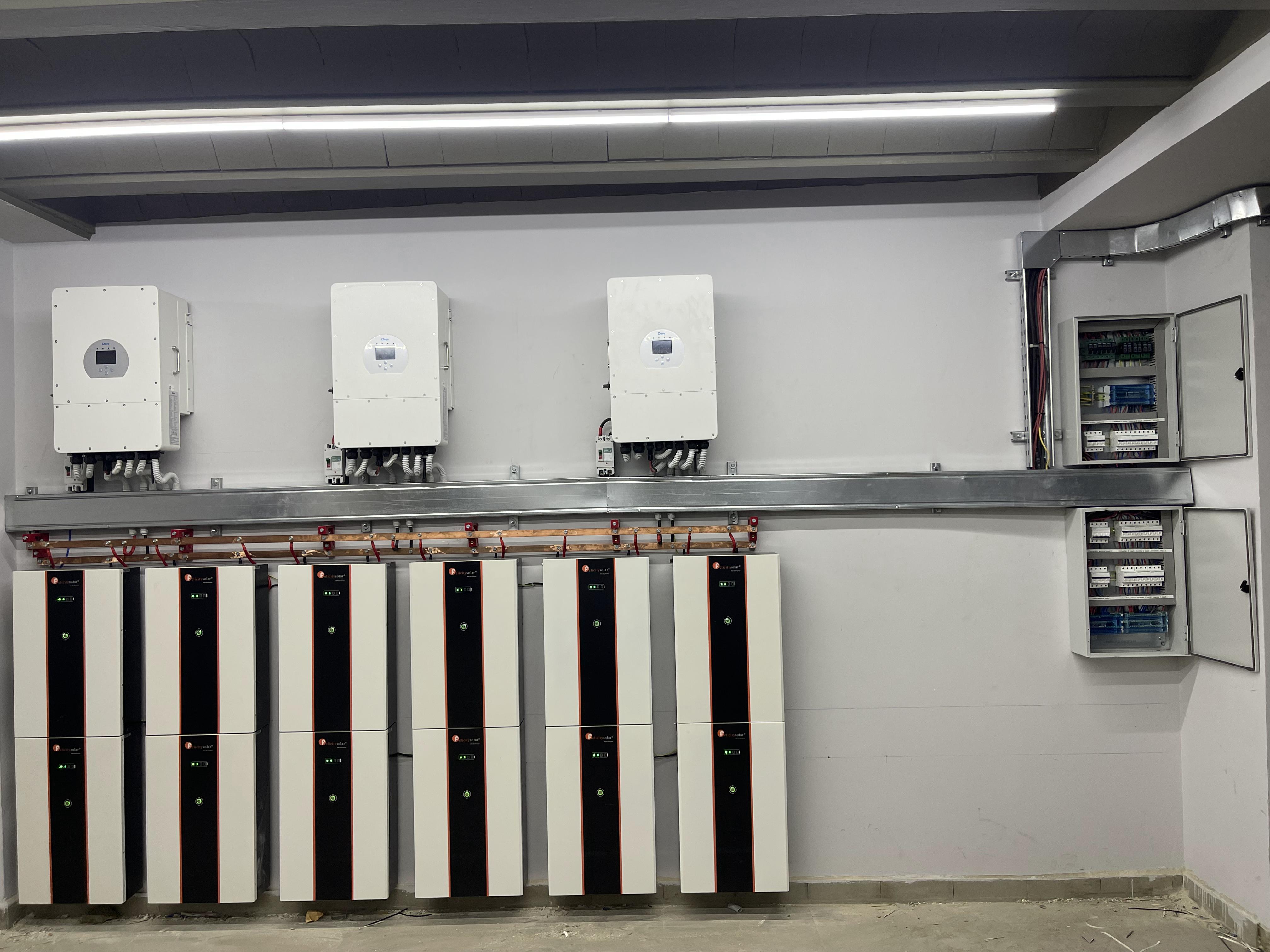 Unveiling an avant-garde hybrid solar power system at Nahle Home – Pistachio Round, that seamlessly marries technological innovation with sustainability. At its core are three Deye 12kW inverters, exemplifying precision and efficiency in converting solar energy into a usable power source. Accompanying these inverters are 12 LPBF48150-P Felicity Solar 7.2kWh batteries with brand new cells, forming a robust energy storage foundation to ensure an uninterrupted power supply, day or night.